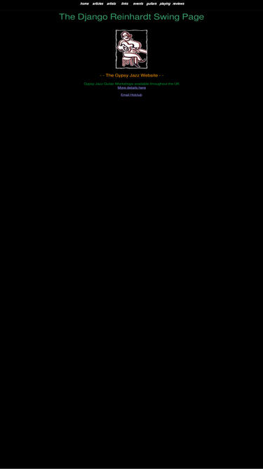 75%the django reinhardt swing page - the site dedicated to the gypsy jazz enthusiast, articles, reviews, tuition for players, links and tips. we even have tuition books and cd's available. come and have a mooch around.