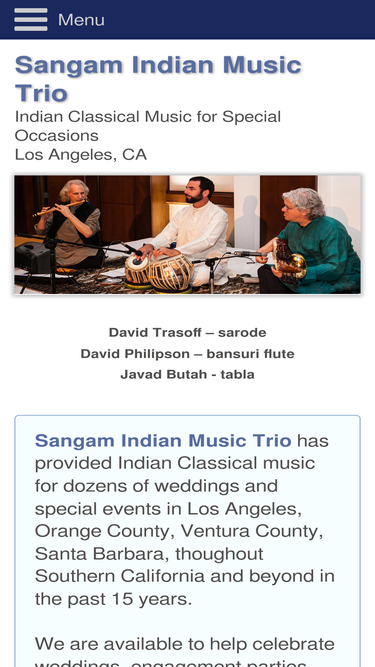 88%Sangam Indian Music Trio provides Indian Classical music for weddings, parties and all special events in Los Angeles, Southern California and beyond.