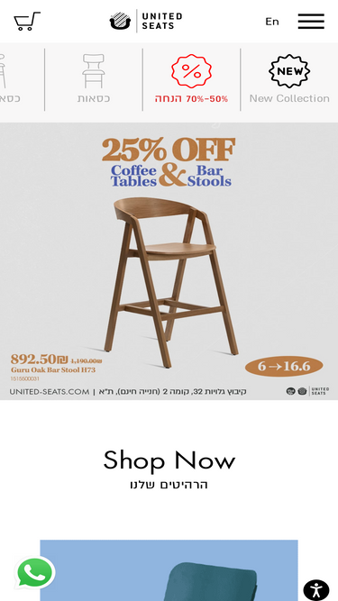 78%United Seats היא חנות רהיטים מעוצבים לבית ולעסק בעיצוב חדשני. יש לנו מלאי ענק הכולל ספות, כסאות, ריהוט משרדי, שולחנות ועוד. להזמנות ומשלוח מהיר, לחצו