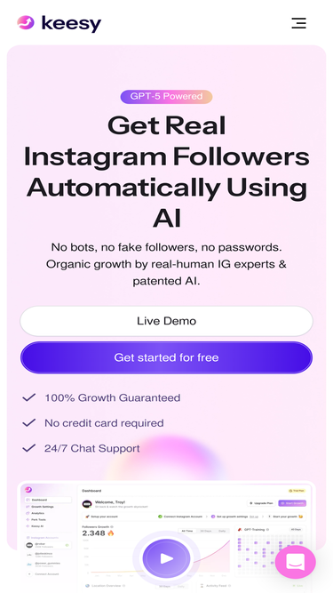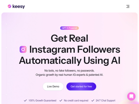 88%Keesy is the leading AI Instagram Growth Service in 2026. Get real Instagram followers & engagement with our proprietary AI models and. Start for free today.