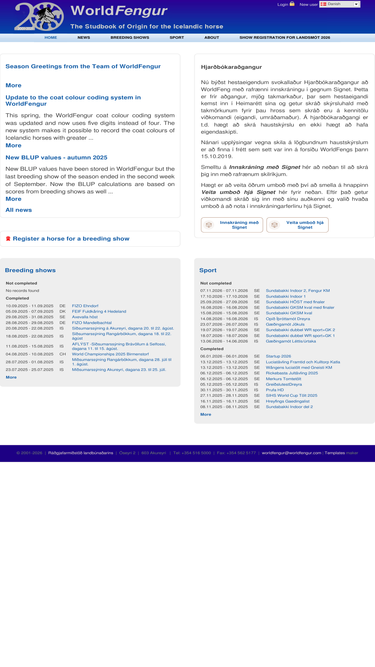 75%worldfengur er upprunaættbók íslenska hestsins. worldfengur safnar saman upplýsingum um íslenska hesta innan landa feif (félag eigenda íslenskra hesta erlendis) og eru þær aðgengilegar á vefnum. worldfengur is the studbook of origin for the icelandic horse. worldfengur is a web database program, which opens access to a database containing information on icelandic horses in the membership countries of the feif (international federation of icelandic horse associations).