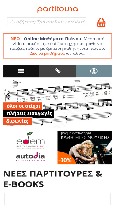 82%παρτιτούρες για πιάνο από ελληνικά τραγούδια και μουσικά e-books. διαθέσιμες παρτιτούρες και για μπουζούκι, χορωδία, ντραμς, ορχήστρα, ταμπλατούρες για κιθάρα και πνευστά. δημιουργία παρτιτούρας.