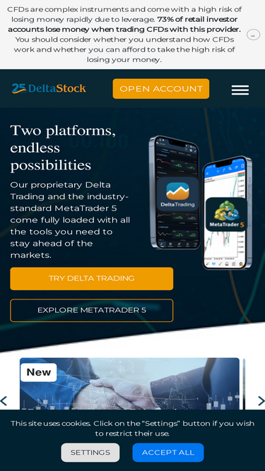 75%Monitor Deltastock’s real-time quotes: currency pairs, stock indices and futures – over 1000 markets.
