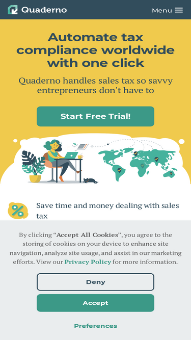 90%Quaderno es un software para la gestión, cálculo y aplicación automática del IVA para negocios online.