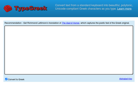 81%type greek.com convert text from a standard keyboard into beautiful, polytonic, unicode-compliant greek characters as you type.