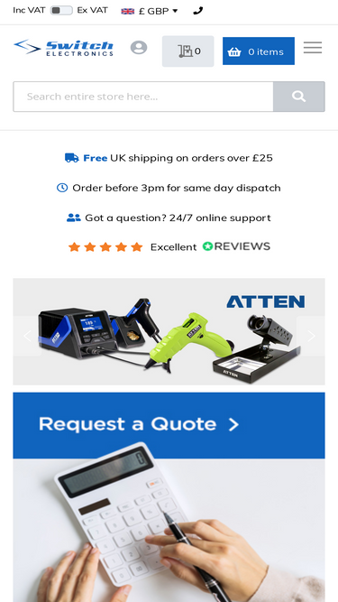 79%Welcome to Switch Electronics, we are a UK based electronic components distributor stocking over 15,000 parts from LEDs to passives, relays, semiconductors, cable, connectors and of course Switches! Everything is fully stocked in our warehouse and available for next day delivery.