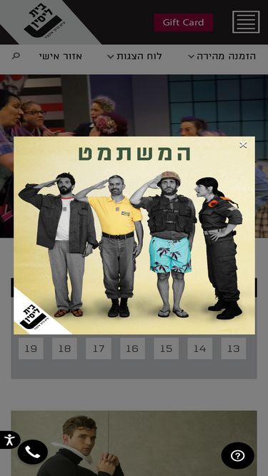 46%שאלות ותשובות איך לבצע הזמנת כרטיסים? מכירת כרטיסים להצגה תעשה מראש ובאופן מקוון או טלפוני בלבד 03-7255333 או בשיחת חינם 1800-44-111 לצורך ביצוע הזמנה יידרש המשתמש למסור פרטים שונים, כגון: שם פרטי, שם משפחה, כתובת מלאה, לרבות שם הרחוב, מס’ הבית, מס’ הדירה, ישוב ומיקוד, מס’ טלפון, כתובת דואר אלקטרוני, אשר ישמשו ליצירת קשר ולמשלוח מידע ...