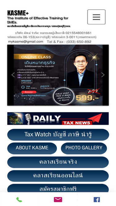 58%KASME สถาบันฝึกอบรมบัญชี อบรมภาษี CPD CPA นักบัญชีและบุคคลทั่วไปยาวนานกว่า 11 ปี บริการฝึกอบรมทางด้านบัญชีและภาษี สัมมนาภายในและภายนอกองค์กร อบรมนับชั่วโมง CPD ของผู้ทำบัญชีและผู้สอบบัญชี รหัสสถาบัน 06-153 (สภาวิชาชีพบัญชีฯ) รหัสองค์กร 3-0011 (กรมสรรพากร)