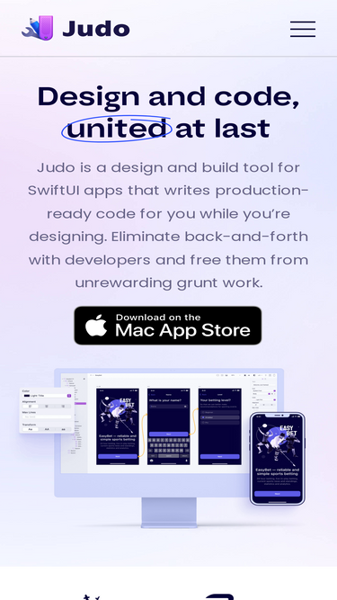 Judo reinvents traditional designer-developer handoff by empowering designers to build interfaces themselves. Build beautiful pages in without any code using swiftUI and our library of components.
