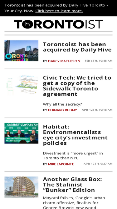 97%The Grid is a weekly city magazine and daily website providing a fresh, accessible voice for Toronto. Our goal is to capture the vibe and energy of a city in ascendance, largely by rejecting the glossy, doggedly aspirational vision of it you see in so many other publications.