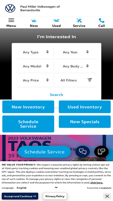 95%looking for a volkswagen dealer in nj? in paul miller volkswagen of bernardsville, you've found a solid one. visit our showroom, shop online, or schedule service with no-contact pickup/delivery available!