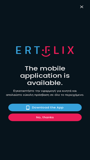 76%η ertflix είναι μία ψηφιακή πλατφόρμα (οττ - over the top) που παρέχει στους χρήστες τής δωρεάν υπηρεσίες streaming vod και live περιεχομένου σε όλες τις κατηγορίες προγράμματος (ταινίες, σειρές, ντοκιμαντέρ, παιδικά, αθλητικά, αρχειακό υλικό, κλπ) με κοινή εμπειρία θέασης σε όλες τις οθόνες (smart tvs, κινητά, ταμπλέτες, υπολογιστές, set-top boxes).