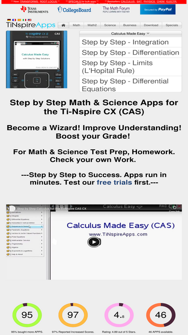 82%step by step apps for the ti-nspire cx & cx cas free download. ace your math, science and business classes
