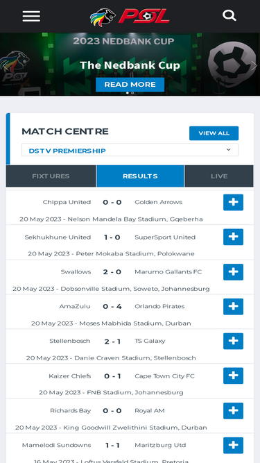 85%this is the official page of the premier soccer league in south africa. visit our page for all the latest news, statistics, fixtures, logs.