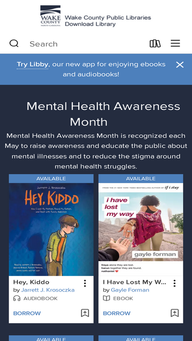 90%Browse, borrow, and enjoy titles from the Wake County Public Libraries digital collection.
