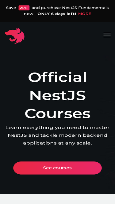 98%Whether you are a Node.js veteran, front-end developer, or even new to development. Learn everything about NestJS from the basic principles, best-practices, tips & tricks, to advanced patterns, getting you ready to build NestJS / Node.js applications at any scale. Prepare for an in-depth guided course & walkthrough of all the fundamentals of a NestJS application from the Creator Kamil Mysliwiec himself, and Mark Pieszak (Core Team Member).