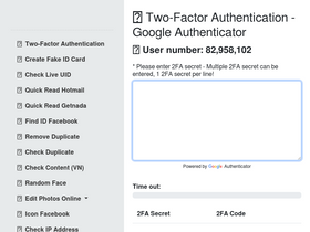 Discover our free tools for Facebook, including get 2FA code, check live uid, UID finder, ID card templates, duplicate removal, Hotmail/Outlook/Getnada access without login, and more. Optimize your Facebook experience with our comprehensive and user-friendly utilities!