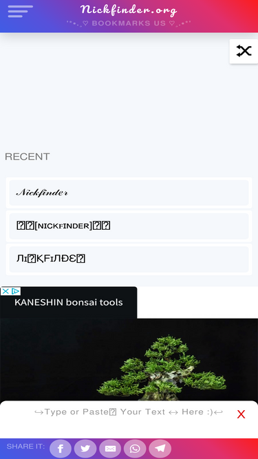 74%ℕ𝕚𝕔𝕜 𝔽𝕚𝕟𝕕𝕖𝕣 𓂀 😍 convert normal TEXT nicknames into Ⓕⓐⓝⓒⓨ looking text for PUBG and Free Fire games with 𝕮𝖔𝖕𝖞 𝖆𝖓𝖉 𝕻𝖆𝖘𝖙𝖊.