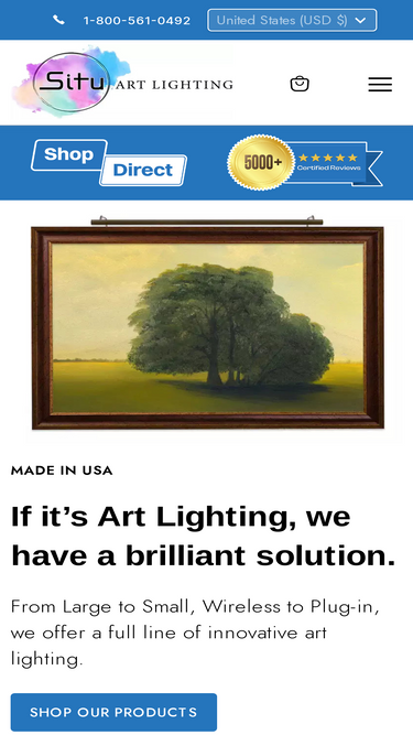 72%Situ Art Lighting - we’re not just a retailer but an American team dedicated to the design and manufacture of fine art lighting. Discover the difference by contacting our dedicated team of art lighting specialists today. All items in stock with free shipping. Experience your artwork™.