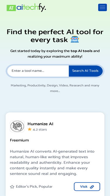 53%Discover a comprehensive array of AI tools at AI Techfy, your go-to destination for streamlining tasks and enhancing productivity.
