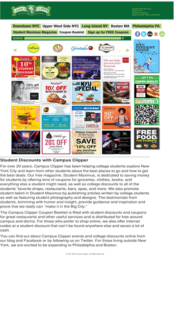 77%the campus clipper: the way students learn to save money. free student coupons for stores & restaurants surrounding the campus areas of new york, boston, and philadelphia