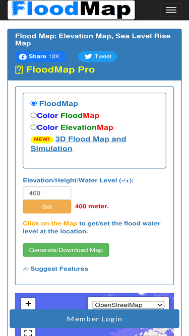 flood map shows the map of the area which could get flooded if the water level rises to a particular elevation. sea level rise map. bathymetric map, ocean depth. effect of global warming and climate change.