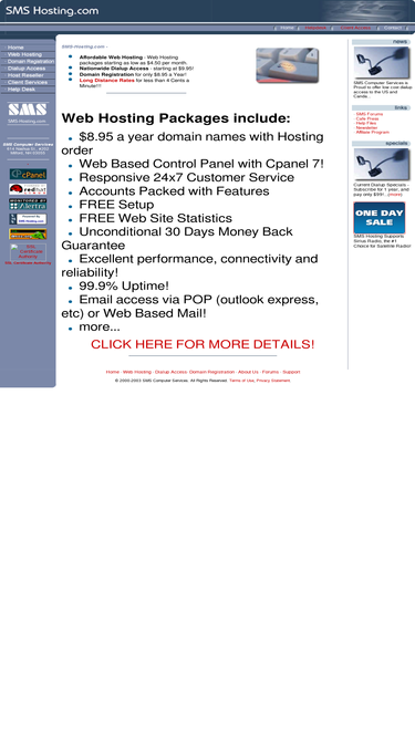 99%premium web hosting, affordable dialup access, low cost domain registration!