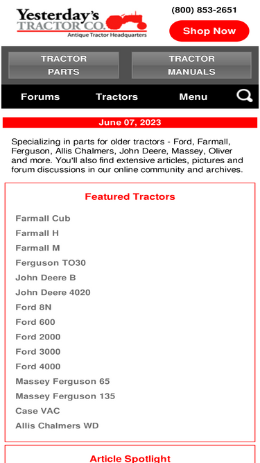 87%the busiest antique tractor parts site on the internet with thousands of pages of information plus discount prices for parts and manuals. photos, specs, articles, hundreds of classified ads, 24 forums, repair advice and much more. serving the antique tractor community since 1995.