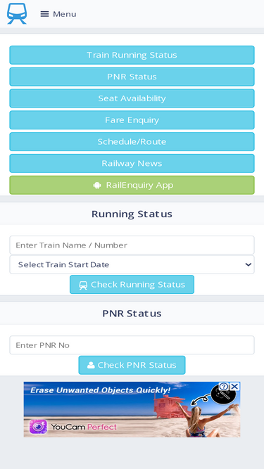 99%rail enquiry, train enquiry, live train status, check train availability, seats availability, train reservation, pnr status, railway timetable