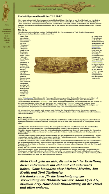73%diese internetseite gibt einen kleinen einblick in die zeit des hochrades. die geschichte, einzelne hochradmodelle, die teile und die fabrikanten dieser „maschinen“ werden vorgestellt.