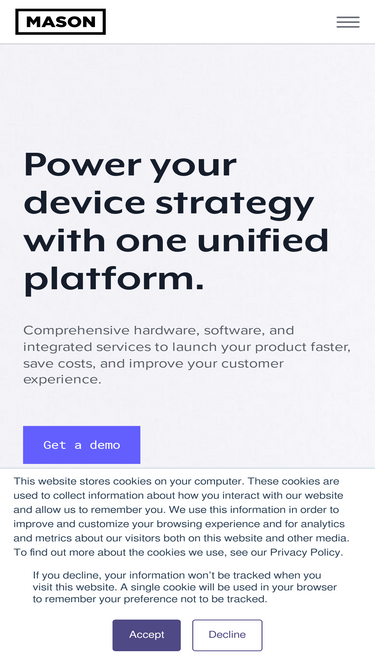 86%Enable reliable, secure data collection in clinical trials with Mason's purpose-built hardware and device management platform.