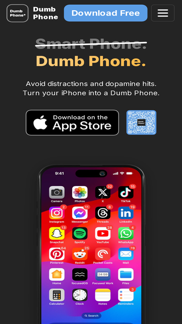 80%Avoid easy distractions and dopamine hits by turning your iPhone into a dumb phone, with the Dumb Phone app for iOS. Simplify your iPhone Home Screen with simple text buttons.