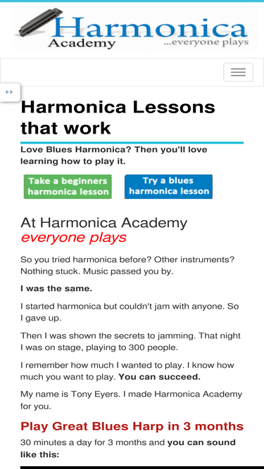 95%Harmonica Academy has online lessons that really work "a very good site for learning how to play the diatonic harmonica" Tabs, blues backings, audio