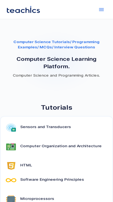 79%Computer Science Tutorials, Programming Examples in Java, C, Data Structures, Python, Interview Questions, Multiple Choice Questions MCQ and Answers. Teachics.