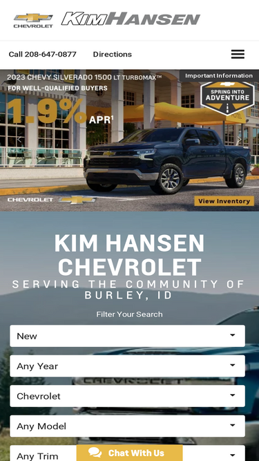 100%Kim Hansen Chevrolet of Burley ID serving Heyburn, Pella, Paul, is one of the finest Burley Chevrolet dealers.