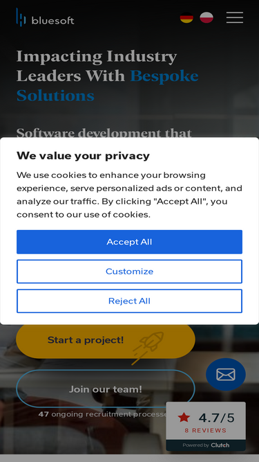 79%Questions? Contact BlueSoft. Our engineers, specialists, and consultants will help you discover the best custom software development solutions for you.