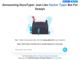 68%DocuTyper makes it look like you're actually typing an essay on any topic you choose. Enter an essay topic and just start typing, we'll take care of the rest ;)