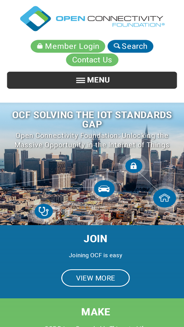 the open connectivity foundation (ocf) create a specification and sponsors an open source project to unlock the massive opportunity in the iot market, accelerating industry innovation and helping developers and companies create solutions that map to a single open specification. the ocf’s vision for iot is that billions of connected devices (devices, phones, computers and sensors) will communicate with one another regardless of manufacturer, operating system, chipset or transport. with the ocf fulfilling this promise, anyone – from a large technology company to a maker in their garage – can adopt the open standards of ocf to innovate and compete, helping ensure secure interoperability for consumers, business, and industry.