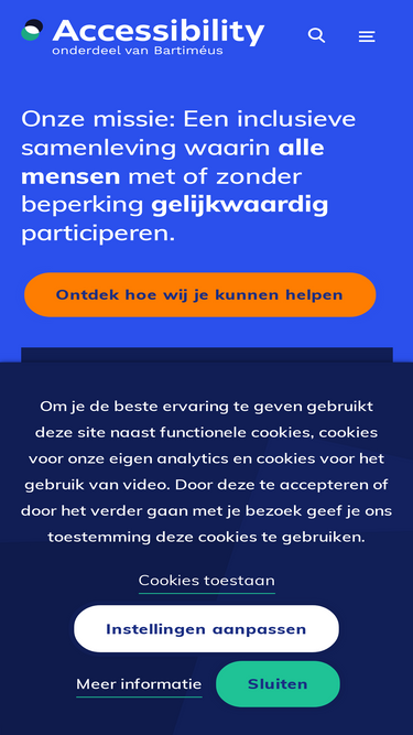 93%‘Diversiteit en inclusie’ is een belangrijk thema binnen iedere organisatie. Het gaat erom dat elk individu zich thuis en betrokken voelt binnen het bedrijf, en zijn of haar werk op eenzelfde manier kan uitvoeren als alle andere collega’s. En dat bezoekers of klanten een goede ervaring hebben als ze gebruik maken van je diensten. Stichting Accessibility kan daarbij helpen. Wij werken aan een inclusieve samenleving die digitaal, fysiek en sociaal toegankelijk is voor iedereen. Dat doen we samen met onze partners en klanten.