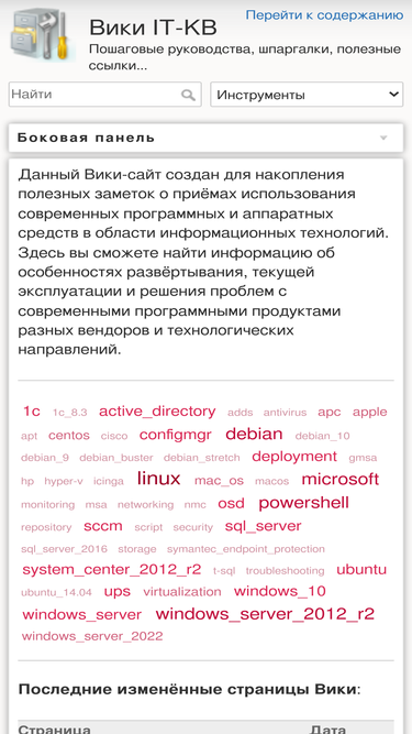 92%данный вики-сайт создан для накопления полезных заметок о приёмах использования современных программных и аппаратных средств в области информационных технологий. здесь вы сможете найти информацию об особенностях развёртывания, текущей эксплуатации и решения проблем с современными программными продуктами разных вендоров и технологических направлений.…