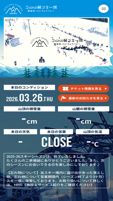 89%立山山麓スキー場(らいちょうバレー、極楽坂)のホームページです。立山山麓スキー場は、富山県 大山観光開発が運営しています。