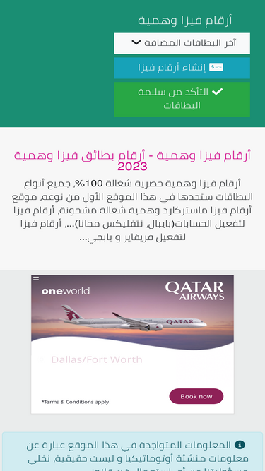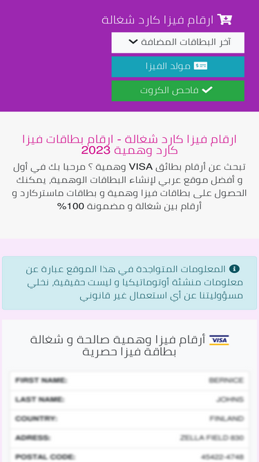 89%تبحث عن أرقام بطائق VISA وهمية ؟ مرحبا بك في أول و أفضل موقع عربي لإنشاء البطاقات الوهمية، يمكنك الحصول على بطاقات فيزا وهمية و بطاقات ماستركارد و أرقام ب...