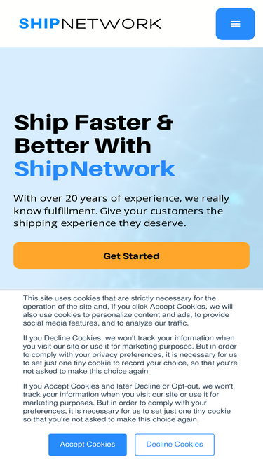 100%Maximize your eCommerce business with ShipNetwork's 1-2 Day Nationwide Ground Fulfillment Network and optimized shipping method. Improve service and cost on every package shipped.