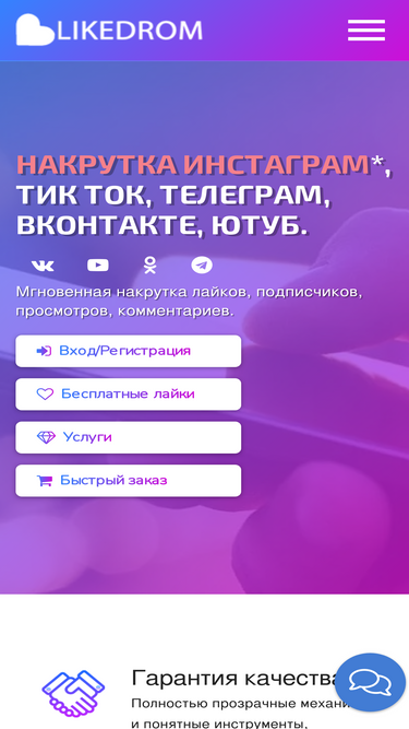 Актуальный список услуг и цены на продвижение: ВКонтакте, TikTok, Telegram, YouTube. Лайки, подписчики, просмотры и другое — на Likedrom.com.
