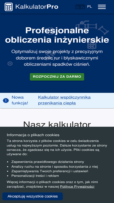 70%Kalkulator projektanta, obliczenia oporów w instalacjach - spadków ciśnień, dobór średnic rur w instalacjach sanitarnych. Obliczenia przepływów w instalacjach. Jak dobrać średnicę rury do przepływu?