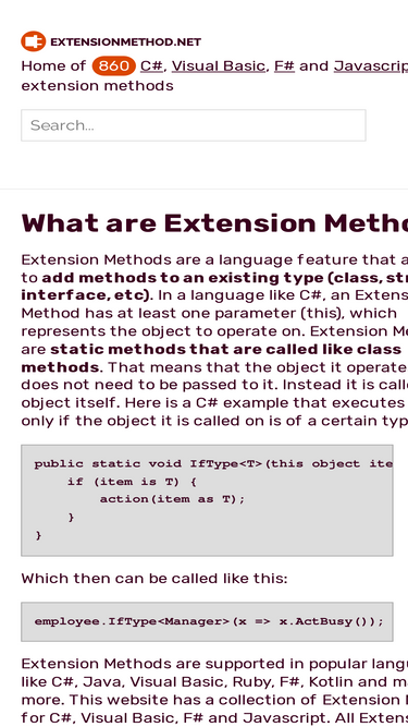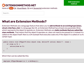 98%home of 880 c#, visual basic, f# and javascript extension methods. on this page you find the most recently added methods