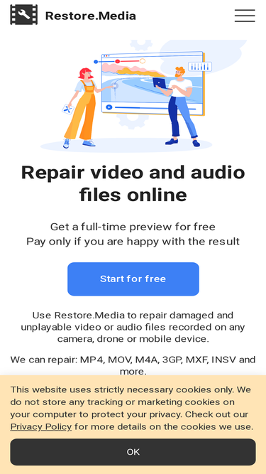76%Register for video and audio files repair. We recover video files on restore media website. Fix your broken video.