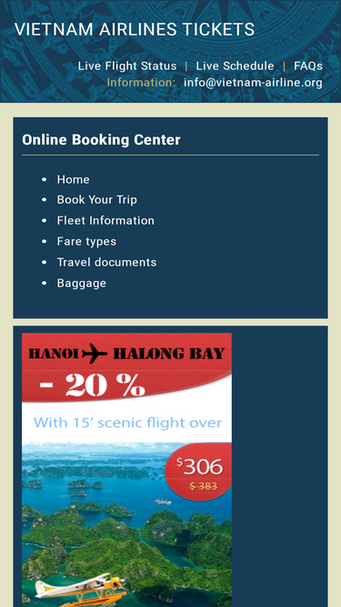 56%vietnam-airline.org is the website for customers to find and book online with the lowest vietnam airlines ticket. we offers weekly flights from hanoi, ho chi minh to destinations such as cambodia, laos, phnom penh, siam reap and vientiane, among others and domestic flight. book now to lock in the best deals.