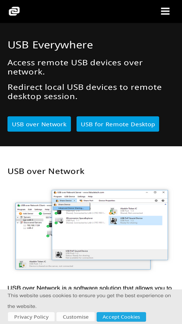 USB over Network, USB for Remote Desktop, virtual COM ports