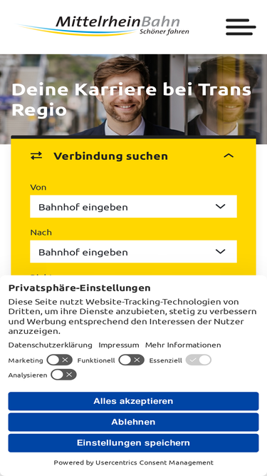 65%Deutsche Bahn: bahn.de - Ihr Mobilitätsportal für Reisen mit der Bahn. Deutschlands beliebtestes Reise- und Mobilitätsportal: Auskunft, Bahnfahrkarten, Online-Tickets, Länder-Tickets, günstige Angebote rund um Urlaub und Reisen.